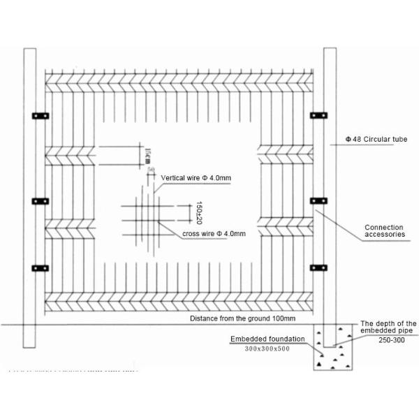 Welded mesh security fencing is a combination of wires in the horizontal and vertical direction welded at their.junctions to provide a rigid fence.A number of differing designs are manufactured from Ø3 mm to Ø5 mm wire.at varying specifications for economy or strength.The mesh size has a dimension of 50 x 200 mm,width 2500 mm panels.Welded mesh panel fencing offers great strength and endurance to bending over the whole surface and we add to 2 to 4 folds in a "V".